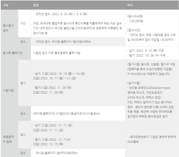일시 - 실기: [1급] 2022. 10. 10.(월) ~ 14.(금)