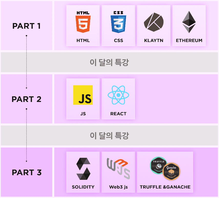 Part 1, Part 2, Part 3으로 진행되며 각 파트 사이에 특강이 있습니다.
