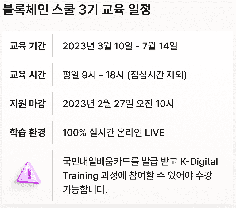 전액무료 블록체인3기 블록체인과정 멋쟁이사자처럼에서 2월27일 접수마감