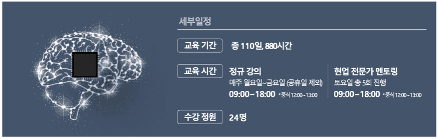 | 클라우드 인프라(120H) | 클라우드 아키텍처 리눅스 네트워크 Docker/Kubernetes |